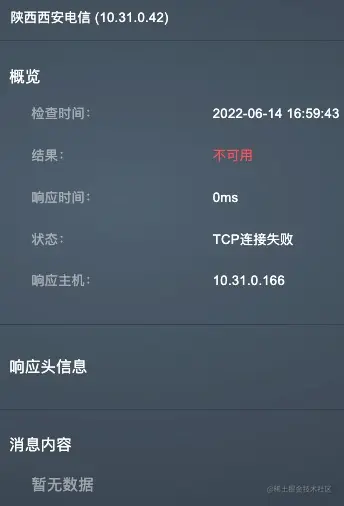 - 概览:包括检查时间、检查结果、响应时间和监测点状态。