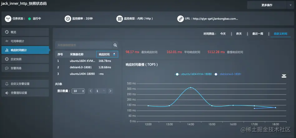 配置入口:网站监控>任务管理>目标监控任务名称>响应 时间 统计