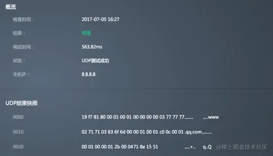 - UDP结果快照:查看返回的UDP报文。