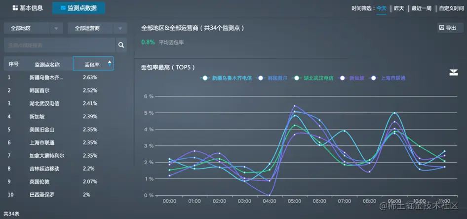 - 监测点丢包率列表