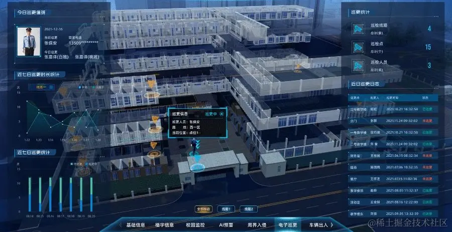 支持对监所建筑进行精细化三维建模,实现监所环境、建筑外观、内部结构、设备设施的真实复现,支持建筑结构逐级展开查看,并可进行点选查询、视点调整及场景切换等交互操作;支持集成视频监控、楼宇管控、周界报警、门禁报警、电子巡更等系统数据,帮助管理者精确直观地掌握监区运维状态。
