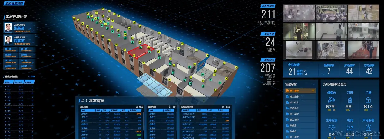 监所/监狱3D可视化系统充分利用数字孪生、可视化、物联网等技术,依托数维图Sovit3D可视化引擎提供构建监所的三维展示、监控、告警、定位、分析一体化的3D可视化平台;达到数据全面集成、信息直观可视、预警实时智能、处置规范高效等效果。