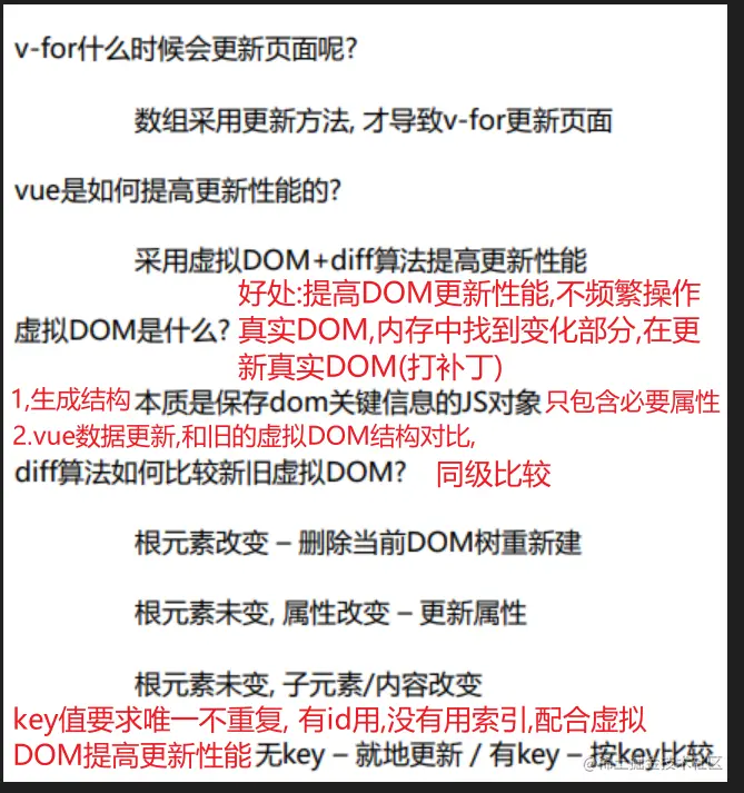 :key是给v-for循环生成标签颁发唯一标识的, 用于性能的优化 , 判断两个节点是否为相同节点