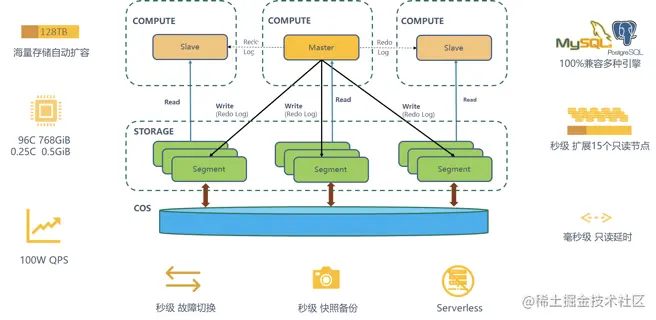 随着互联网的发展,各种业务数据快速膨胀,用户对数据库计算和存储能力的需求日益增长。在应对业务需求持续增长时,传统数据库的迭代和优化已经变得举步维艰,而分布式架构的优势则愈发明显。借助计算存储分离的架构,新硬件优势,物理复制特点,分布式系统优势,云原生数据库 TDSQL-C对比传统MySQL具有高性能,低成本,大存储,主从复制延迟低,秒级扩缩容,极速回档,serverless化等优势。