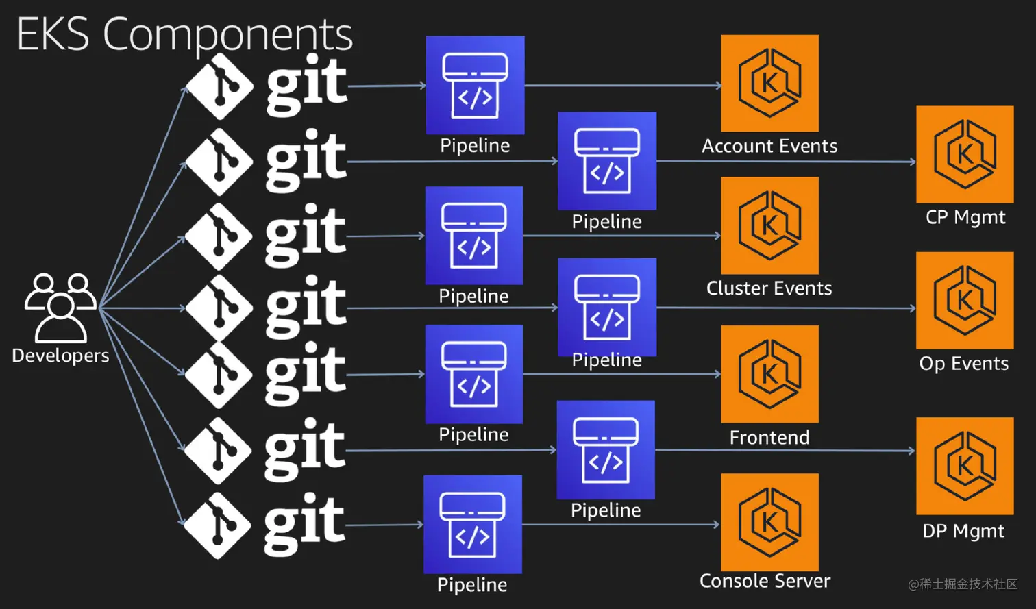 接下来就挑了三个组件(Frontend, Cluster Events和 Contol Plane Management)来进一步讲解其背后的实现: