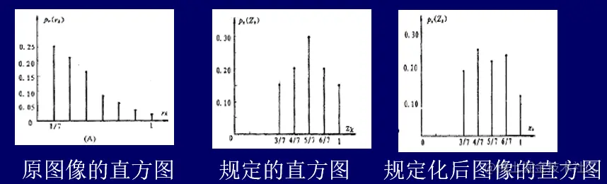 这就是所求得的变换表达式。根据上述思想,可总结出直方图规定化增强处理的步骤如下: