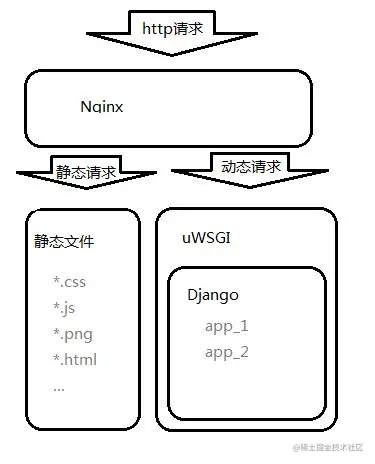 而动态请求,这时候就需要调用uwsgi进行逻辑处理。