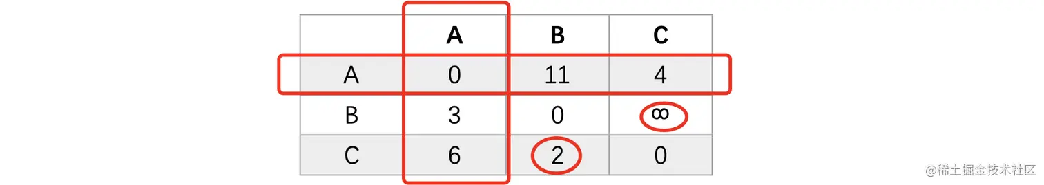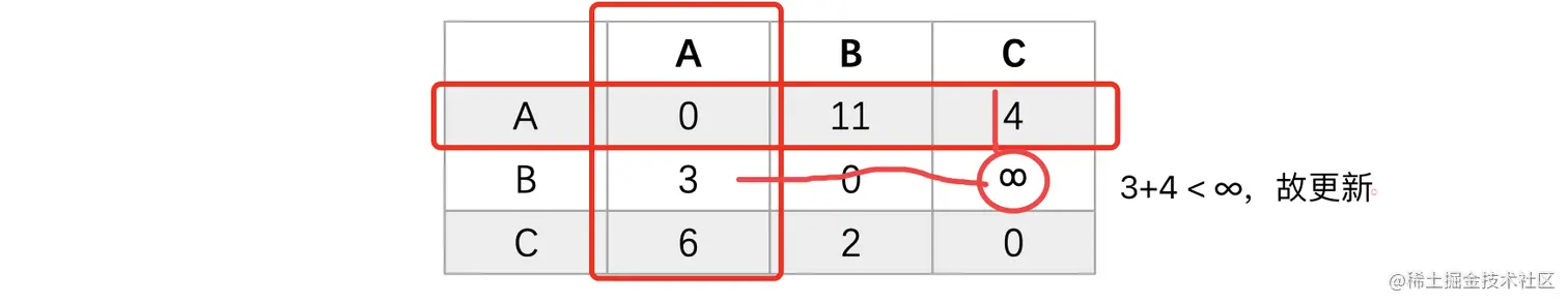 此时我们将A->B的距离也更新一下:
