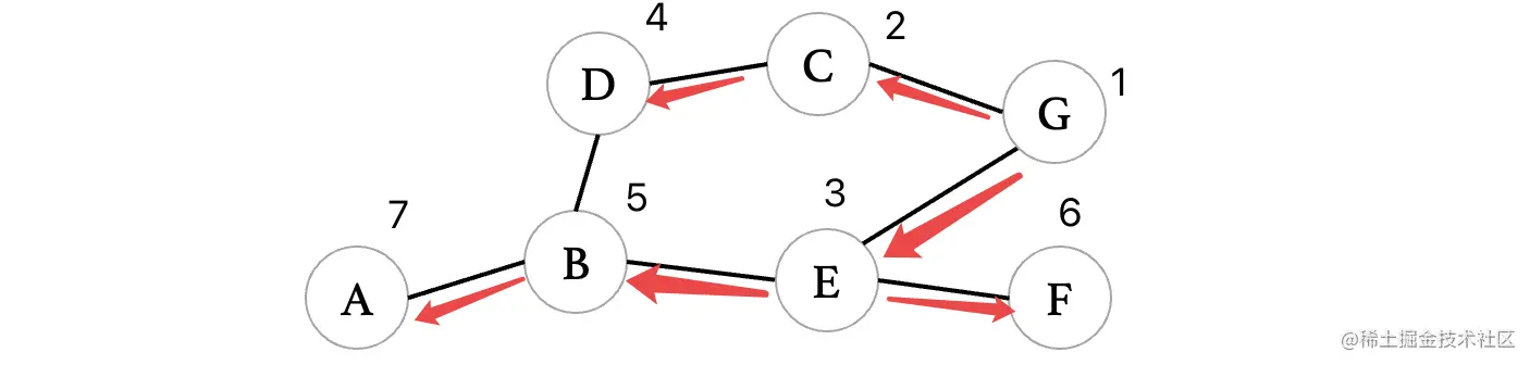 - 从E到达顶点G:直接写入。