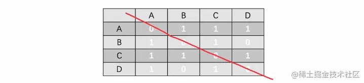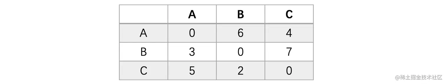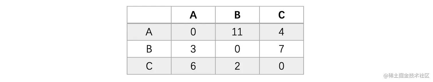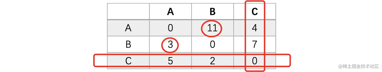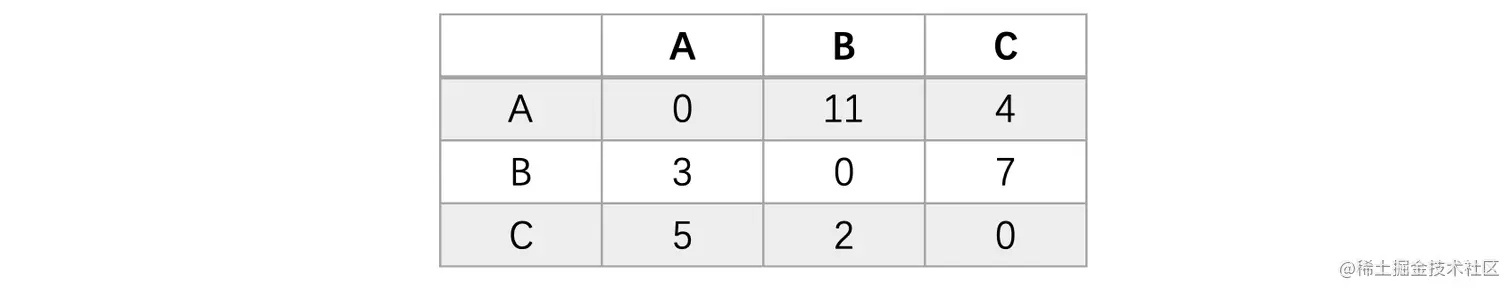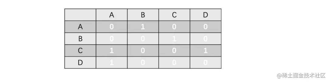 此时我们需要使用邻接矩阵来表示它,就像下面这样: