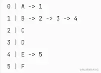 对于图中的每个顶点,建立一个数组,存放一个头结点,将与其邻接的顶点通过一个链表进行记录(类似前面的哈希表)这样,也可以表示一个图的连接关系,并且内存空间能够得到更加有效的利用。当然,对于无向图来说,跟之前一样,两边都需要进行保存: