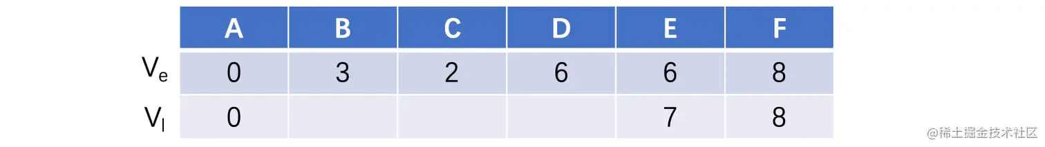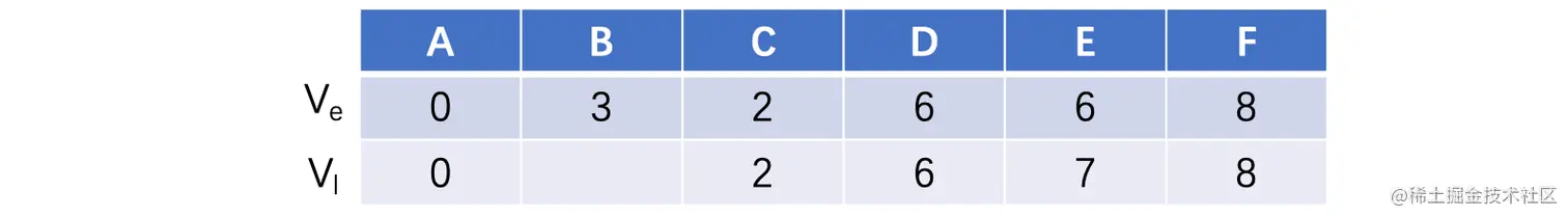 我们需要计算两个东西,一个是事件最早完成时间,还有一个是事件最晚开始时间: