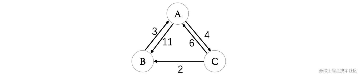 当然最后我们也可以计算一下A -> B和A -> C,但是由于只有这一个起点,所以说算出来肯定是0,当然如果出现多个起点的情况,还需要进行计算得到的。
