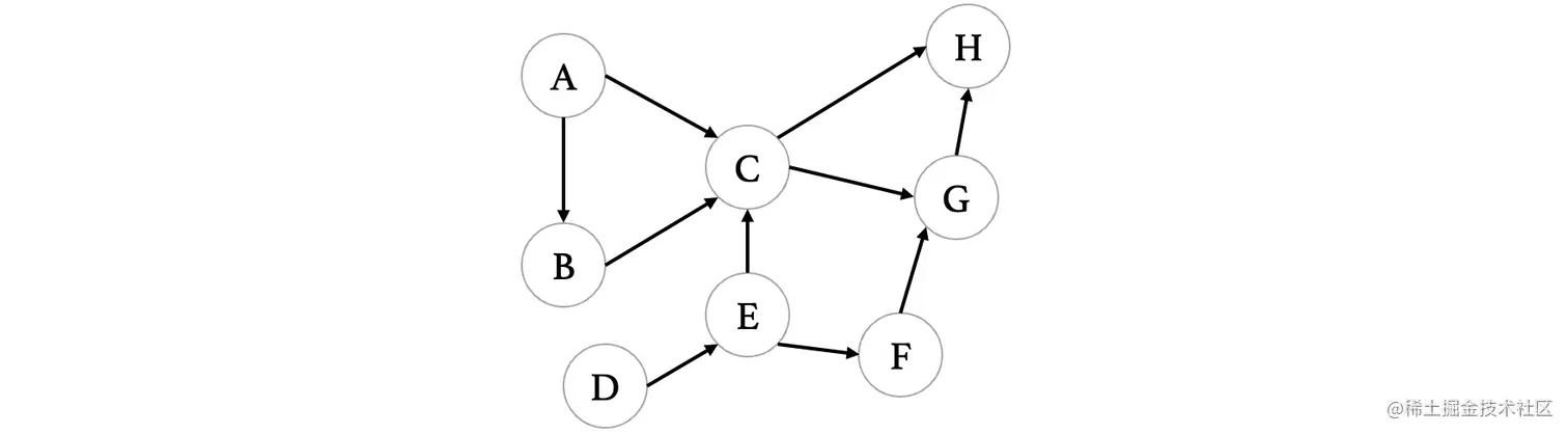 最后得到的拓扑序列为:ADBECFGH。