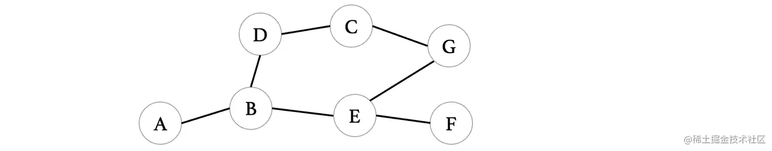 我们继续来到下一个离A最近的顶点F,F连接了G和E,但是由于当前最短路径是从E过来的,不能走回头路,所以说直接去看G,比较 ),得到从F到达G会更短,所以说更新G: