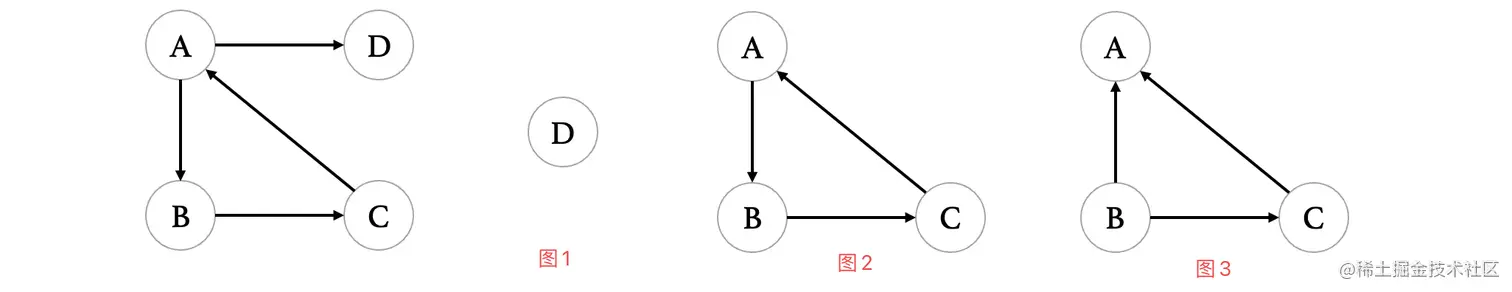 接着我们来看看图中剩余的顶点,哪些又是入度为0的顶点,可以看到D也是: