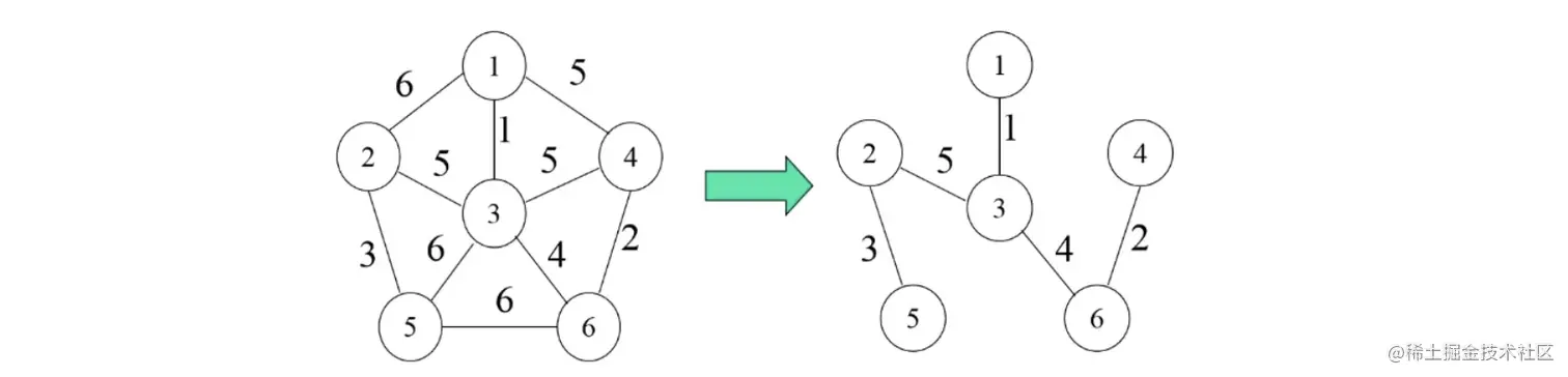 我们接着来看另一种,克鲁斯卡尔算法,它的核心思想就是我们主动去选择那些小的边,而不是像上面一样被动地扩展延伸。