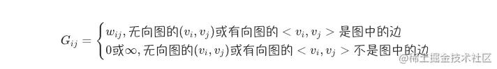 对于一个带权值的图来说,如果有边,则直接填写对应边的权值,如果没有,那么就填写0或是∞来进行表示: