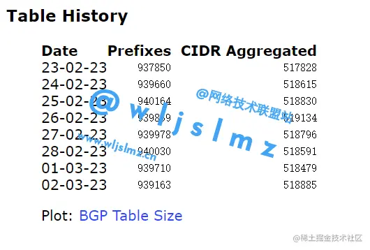 与 IGP 不同,BGP 可以容纳超过 100000 条路由,互联网上交换的路由数量逐年增加,截至2023年3月,已经超过93万条路由,可以通过查看CIDR 报告来了解互联网上当前的路由数量。