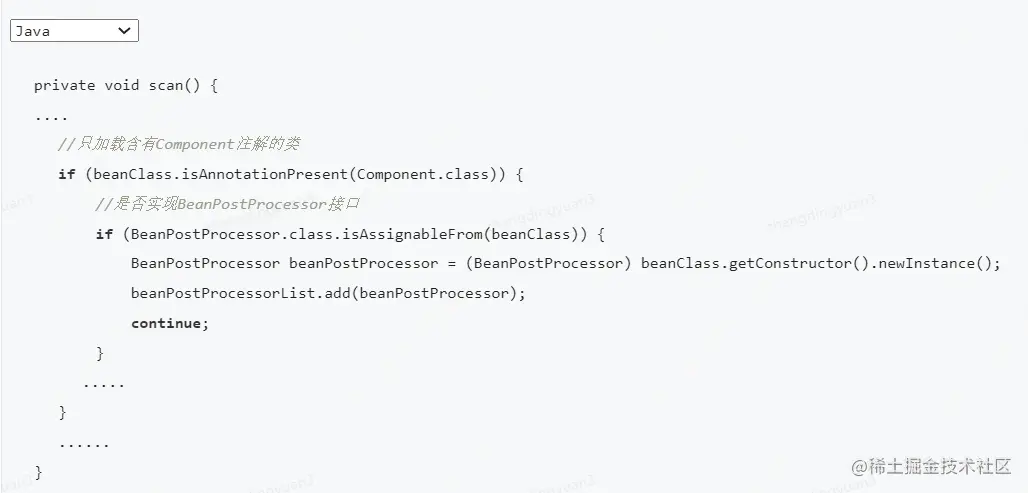 在JdApplicationContext类初始化的时候,通过AppConfig配置类获取类的扫描路径,在扫描路径下,找到需要创建Bean的类,通过标注Component注解的类识别需要创建的Bean。