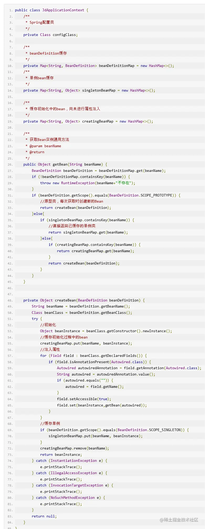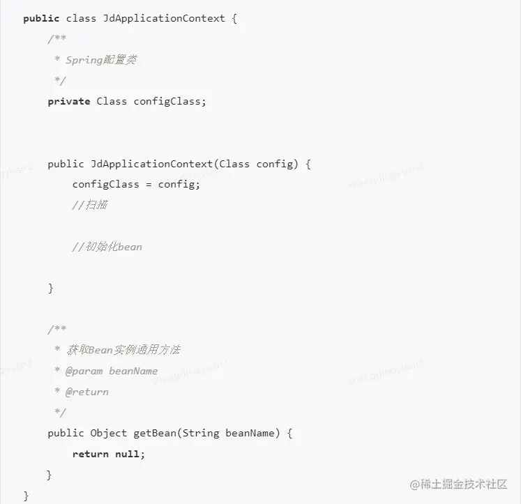 创建JdApplicationContext类,提供获取Bean实例方法,通过构造函数动态初始化bean实例。