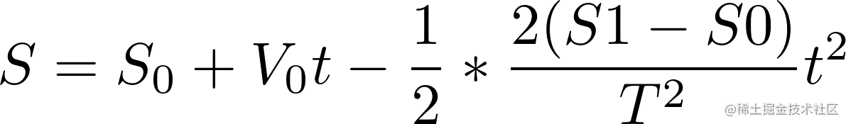 接下来把a换掉。若终点的坐标为S1,整个运动的距离为S1 - S0, 整个时间为T,则我们可以用S1和S0表示a: