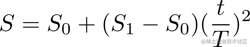 将t/T更换成p,S0更换成start,S1更换成end,就是上面的插值公式了start + (end - start) * p ^ 2
