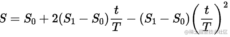 将t/T更换成p,S0更换成start,S1更换成end,就是上面的插值公式了start + (end - start) * (2p - p^2)