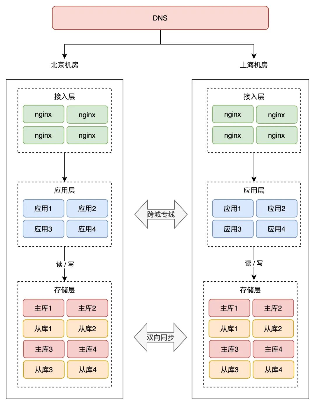 安全起见,每个机房在写存储时,还需要有一套机制,能够检测「数据归属」,应用层操作存储时,需要通过中间件来做「兜底」,避免不该写本机房的情况发生。(篇幅限制,这里不展开讲,理解思路即可)