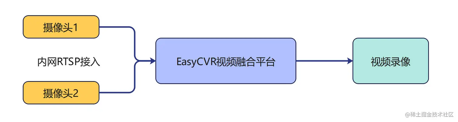 内网RTSP协议接入EasyCVR视频融合平台的架构图如下: