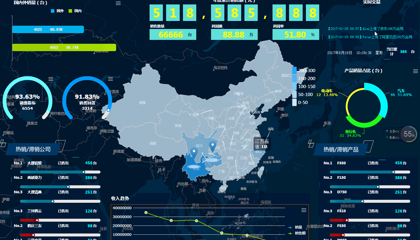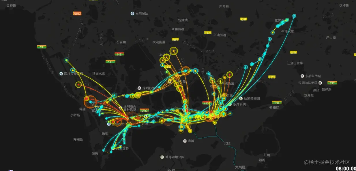 基本上我们常见的可视化大屏基本都是这种静态的。但是在这个内卷的时代,这种报告形式已经不能满足领导了,他们想要的是更美观,更吸引人的报告形式。或许我们可以尝试可视化动态地图