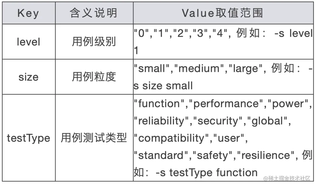 | class | 指定要执行的测试套&用例 | {describeName}#{itName},${describeName} , 例如:-s class attributeTest#testAttributeIt |
