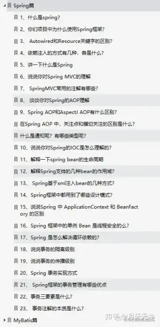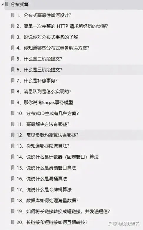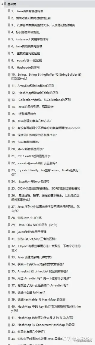 这份面试总结比较多,就不一一的详细介绍了,粗略的将主要内容展示一下,其中含有 20+的知识点: