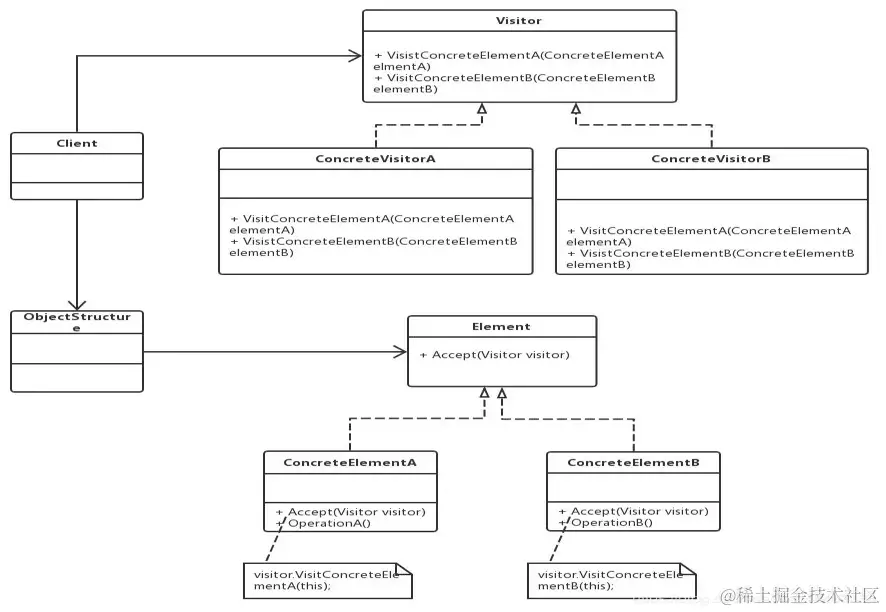 解法分析: 尽量避免把逻辑耦合到已有的实现类中。引入外部类进行控制反转。这里我们使用访问者模式。