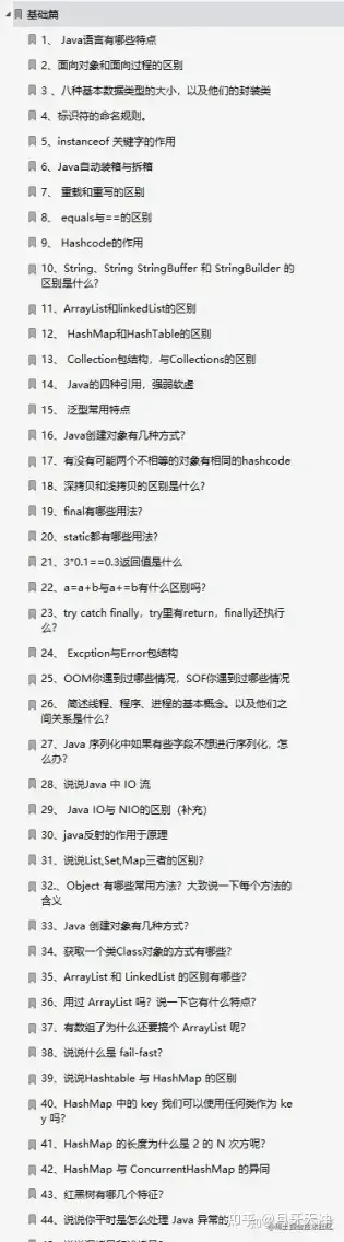 这份面试总结比较多,就不一一的详细介绍了,粗略的将主要内容展示一下,其中含有 20+的知识点: