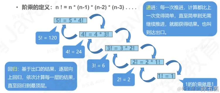 大家应该都听过阶乘的概念,那么如何通过代码实现阶乘的效果呢?我们先来看下图,复习一下阶乘的实现过程。