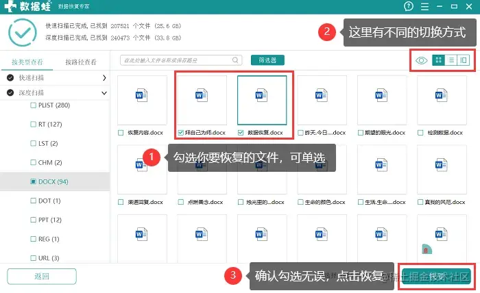 (2)简单易用:操作非常简单,只需几步就能完成数据恢复操作。