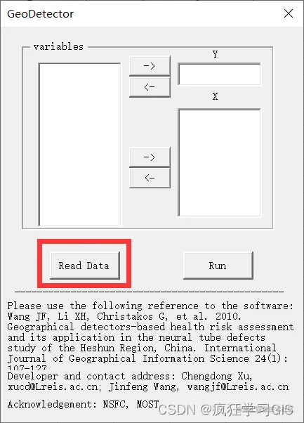 复制数据后,在Geodetector软件窗口选择“Read Data”。