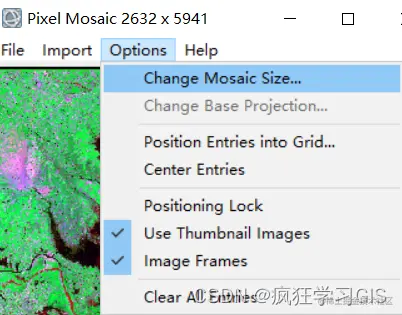 依次选择“Options”→“Change Mosaic Size...”,打开镶嵌范围的配置框。