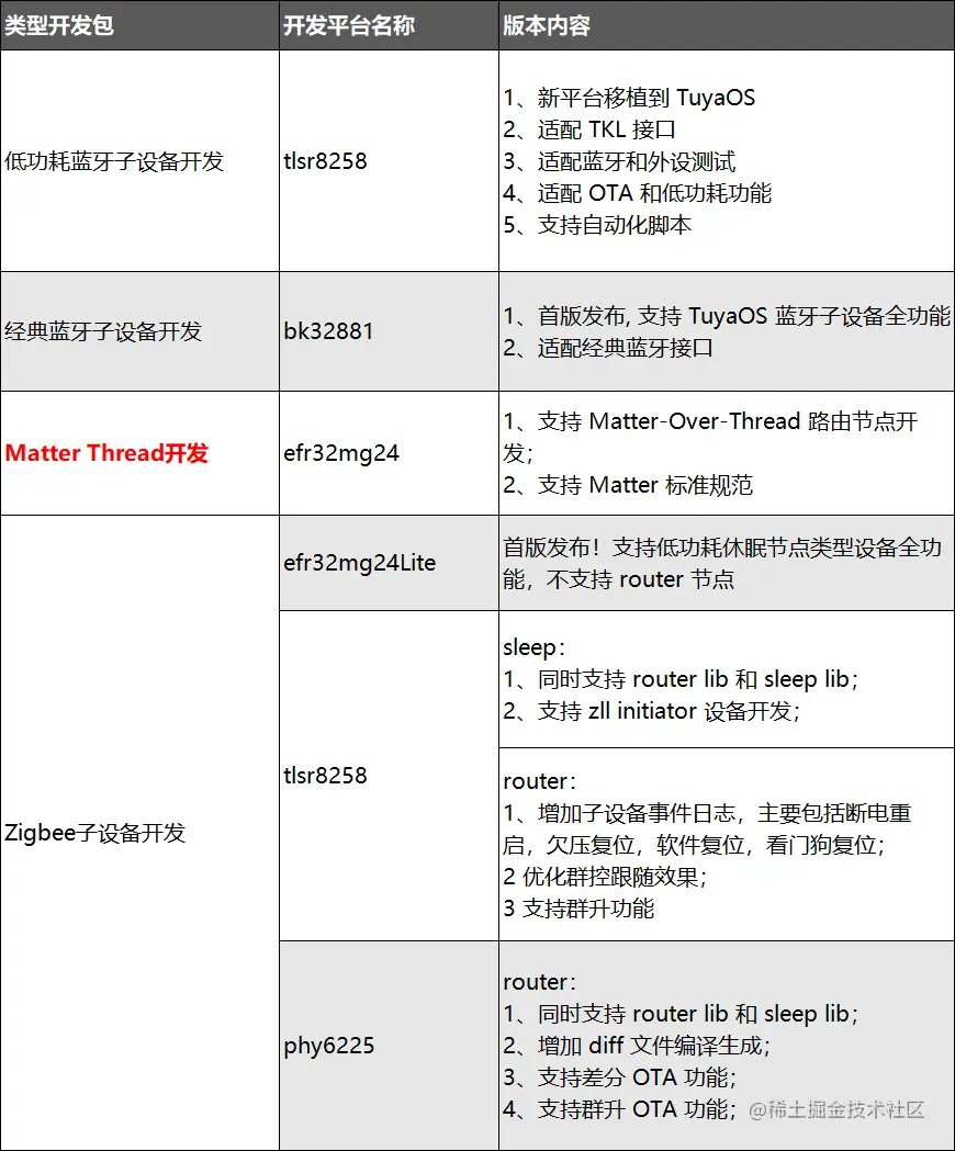 作为降低物联网开发门槛的TuyaOS ,此次迎来了重大更新(点击查看TuyaOS 往期介绍)!TuyaOS 3.7.0 新版本不仅支持多款 Matter 开发框架,帮助开发者轻松奔赴万物互联时代,还覆盖多种协议连接,能快速实现与其他开发平台的无缝接入,致力于做让开发者更省心的开发工具。