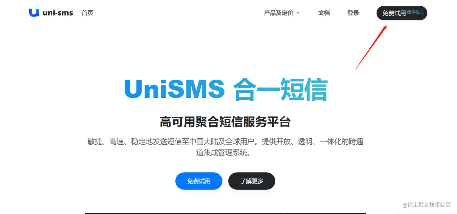 选一个合适的短信平台,华为云、阿里云、腾讯云这些大厂对接会慢一点,这里推荐一下UniSMS,平台技术对接起来比较快,通常半小时左右可以解决问题。