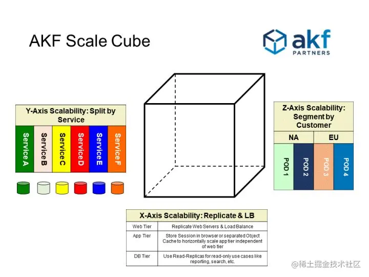 Z轴:沿客户边界的服务和数据分区-分片/窗格 x扩展应用,负载均衡,y拆分服务,z数据库分库分表 常见的分片的方式