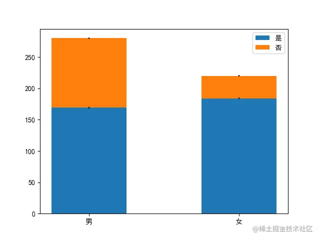 ax.bar(labels,yellow,width,yerr=yellow_err,bottom=blue,label='否')
