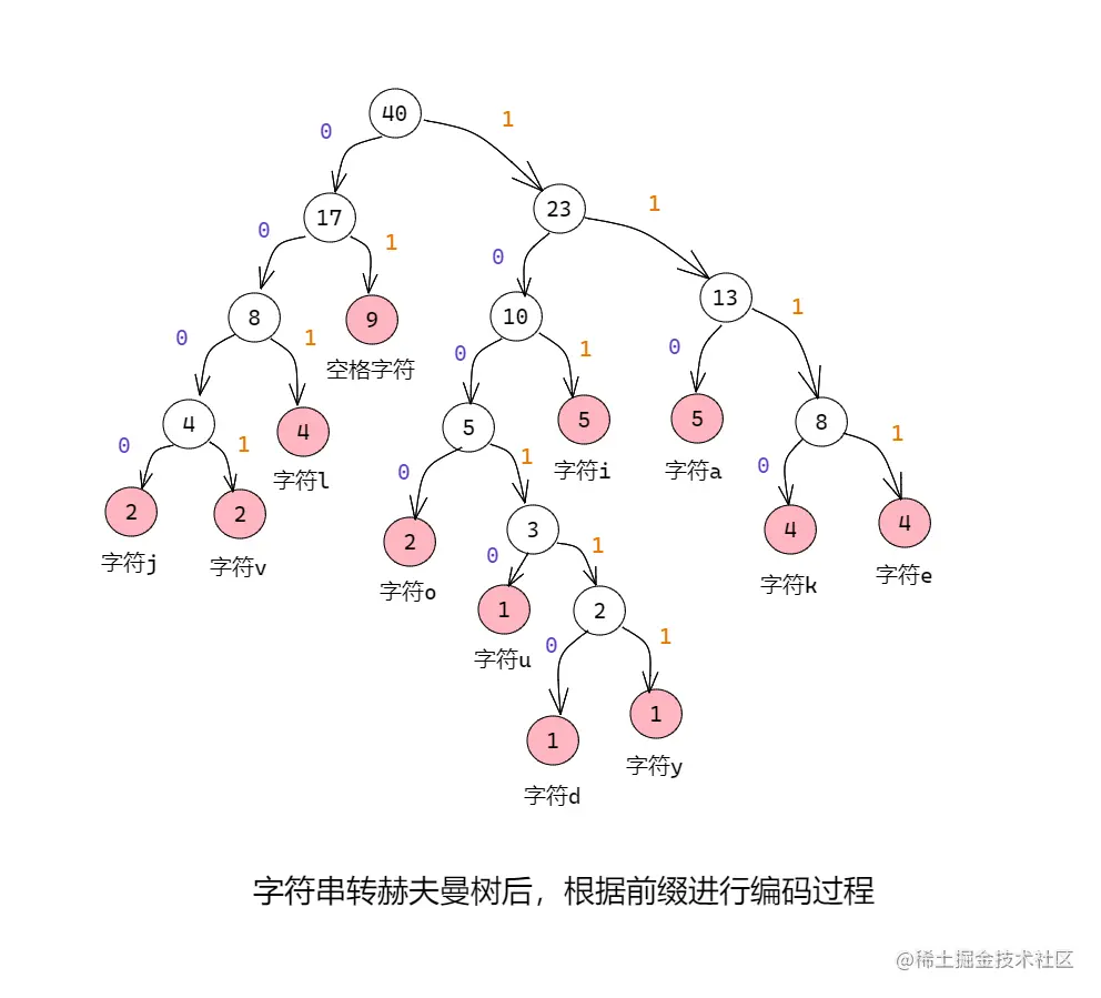 // 对应的赫夫曼编码。