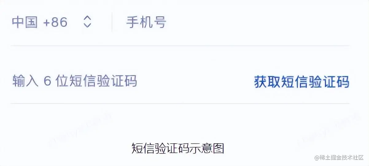 目前用得比较广泛的一种验证码形式,输入有效的手机号后,系统给手机号发送相应的短信验证码完成验证。