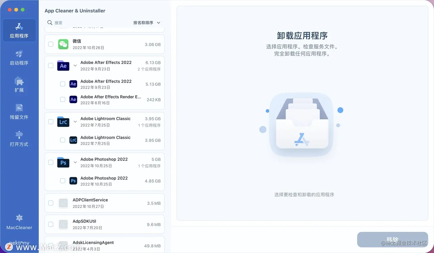 应用程序清理器可帮助您轻松删除 Mac 上的应用程序,而无需保留其服务文件。