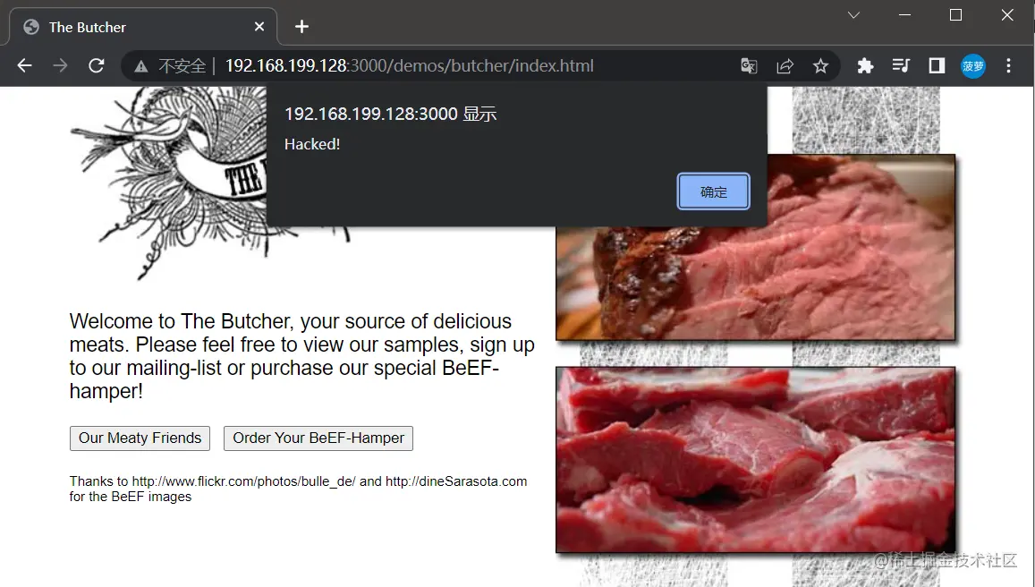 在我们主机这边看来只是一个普通的牛肉页面,然而当我们回到BeEF页面时,