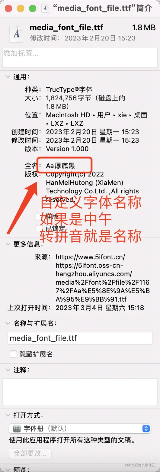 温馨提示: 字体名称并非文件名称 查看字体名称,对文件右键菜单=>显示简介