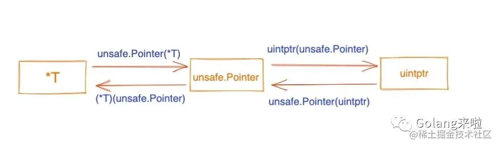 unsafe.Pointer和uintptr从命名上看就知道和指针有关系。