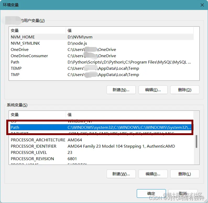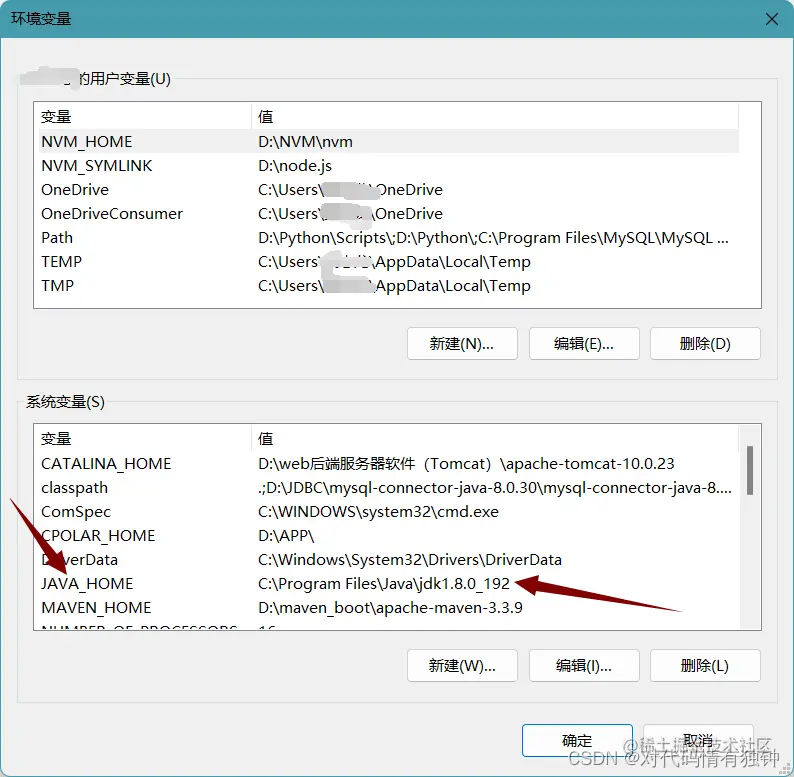 其中有用户变量和系统变量